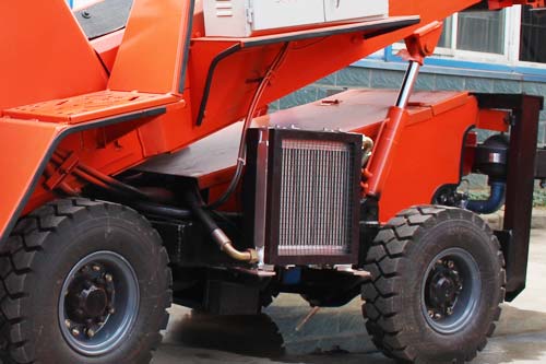 5、本機(jī)采用電動(dòng)全液壓傳動(dòng),液壓行走、挖掘采集、輸送、裝車(chē)四種功能,機(jī)構(gòu)緊湊,推進(jìn)力大,扒取范圍廣,可以全斷面裝巖,不留死角,不需人工輔助清理工作面
